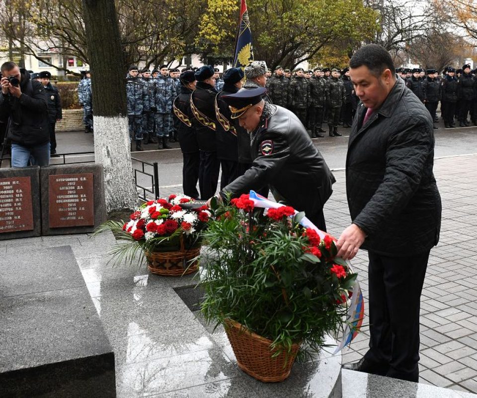 В митинге приняли участие Губернатор Тверской области Игорь Руденя, начальник УМВД России по Тверской области генерал-майор полиции Владимир Андреев, главный федеральный инспектор по Тверской области Игорь Жуков, представители законодательной власти и духовенства региона, курсанты Тверского филиала Московского Университета МВД России, члены семей погибших сотрудников и ветераны МВД.