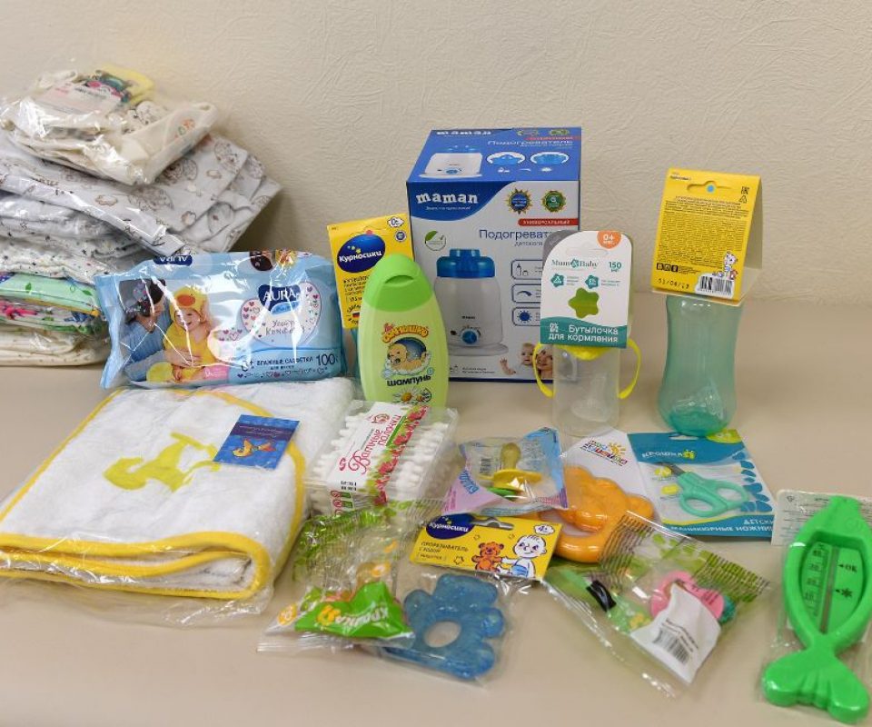 В составе подарочного набора – постельные принадлежности, одежда, средства ухода за малышом и другие предметы. В комплект входит, в том числе продукция тверских производителей.