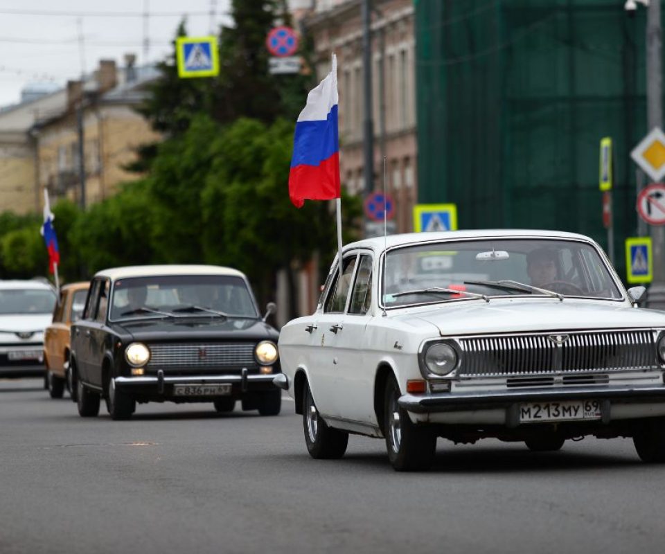 Одно из событий – пробег ретроавтомобилей, который символично стартовал в 12:12 в Твери. Восемь машин с флагами Российской Федерации проехали от площади Гагарина до площади Конституции.