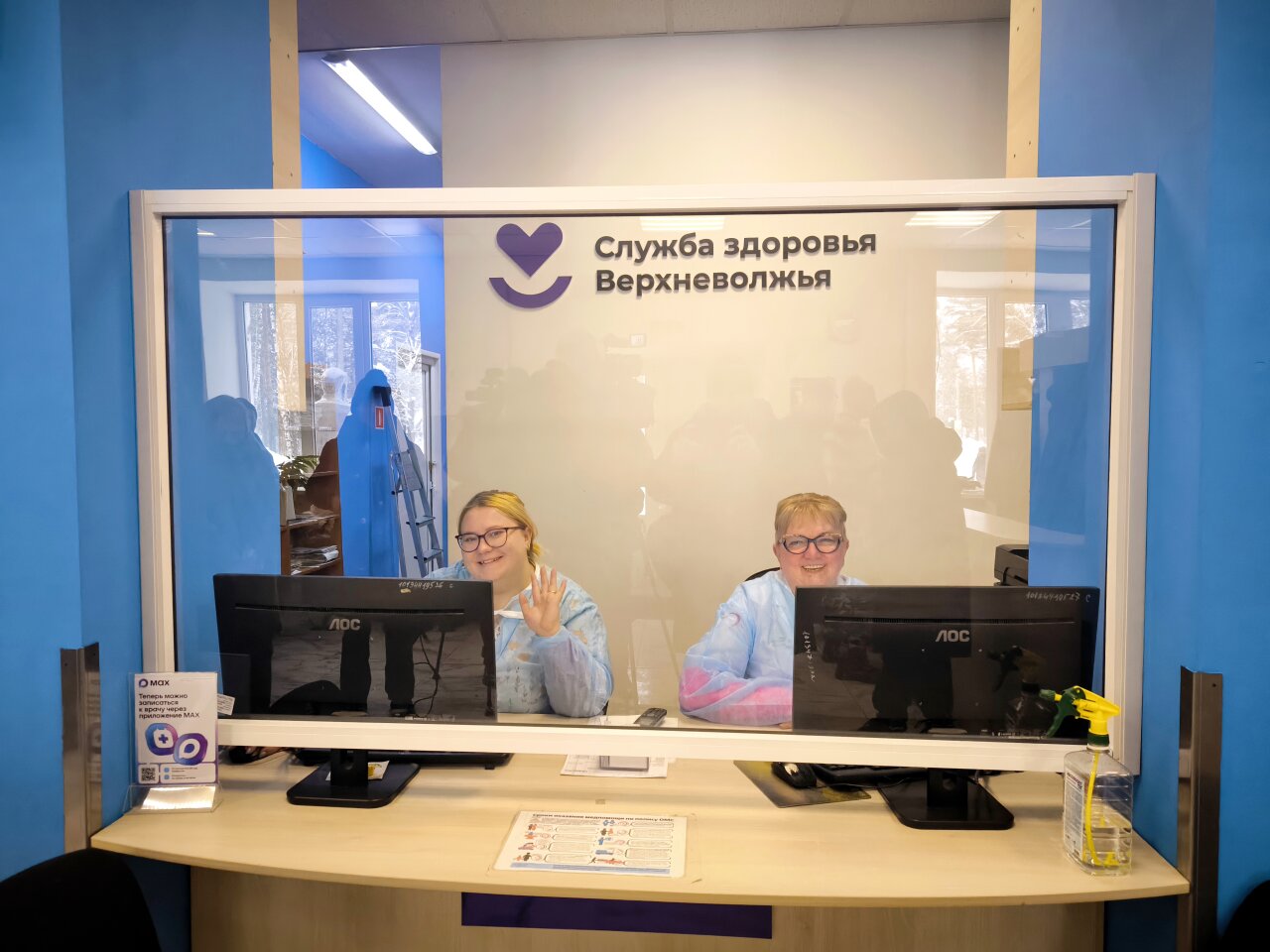 Во время недавнего посещения поликлиники в Медсанчасти (взрослая поликлиника Кимрской центральной районной больницы на Борковском шоссе, 10) мы обратили внимание на уютную атмосферу входной группы. Она теперь выполнена в едином современном стиле с яркой и понятной системой навигации. Посетителей встречает дружелюбный персонал регистратуры, главное окно которой расположено прямо напротив входной двери. Справа — гардероб, слева — зона отдыха и кофейный автомат.