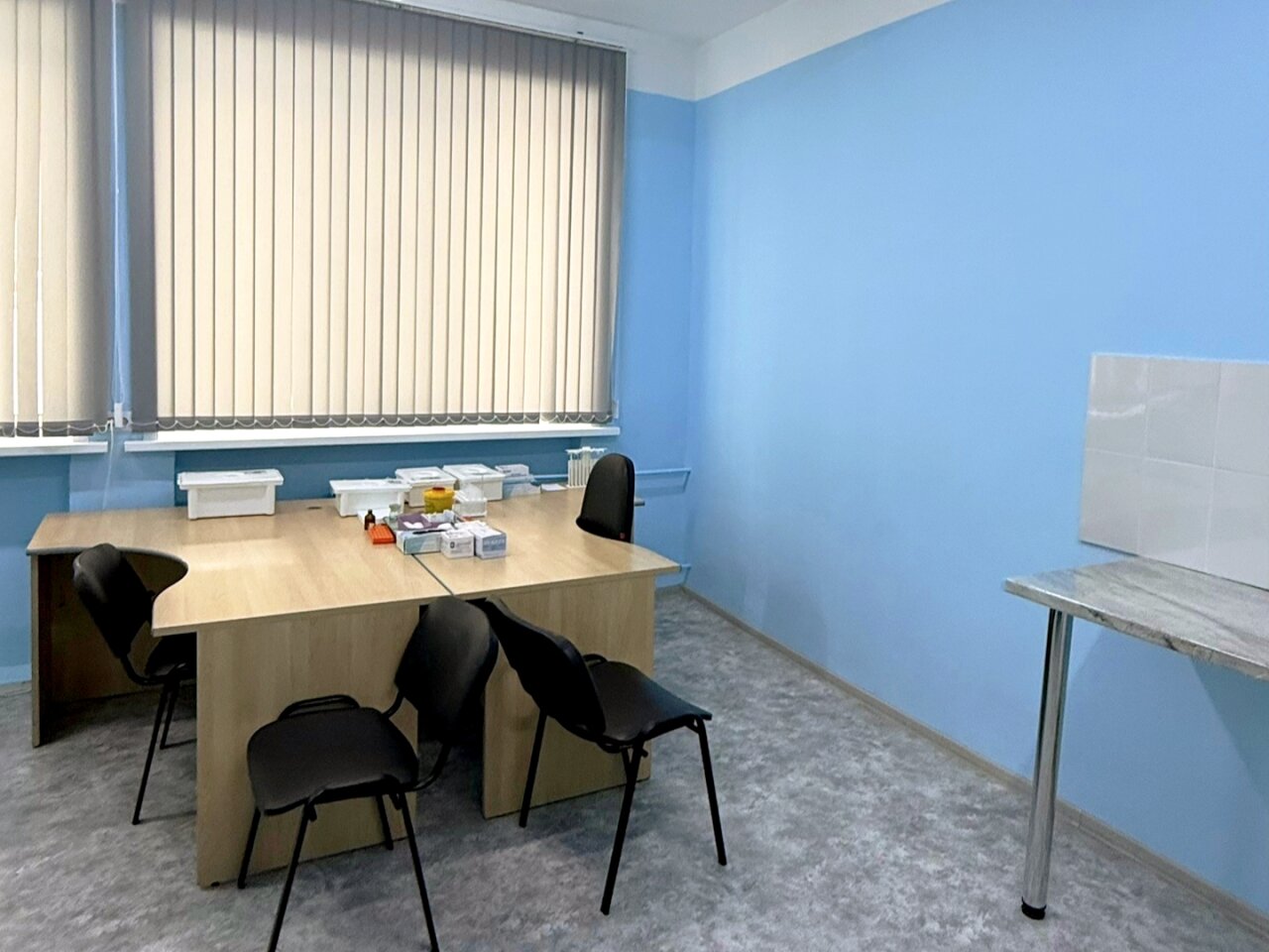 Также в поликлинике выполнен ремонт кабинета забора крови и кабинета проведения химико‑микроскопических исследований.